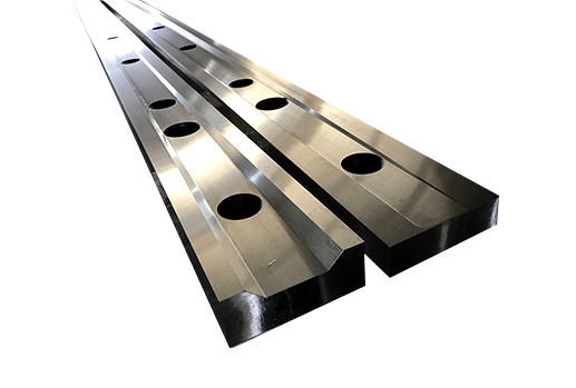 剪板機的刀片材質一般有T10、9CrSI、6CrW2Si、Cr12MoV 、H13,合金鋼等幾種材質。